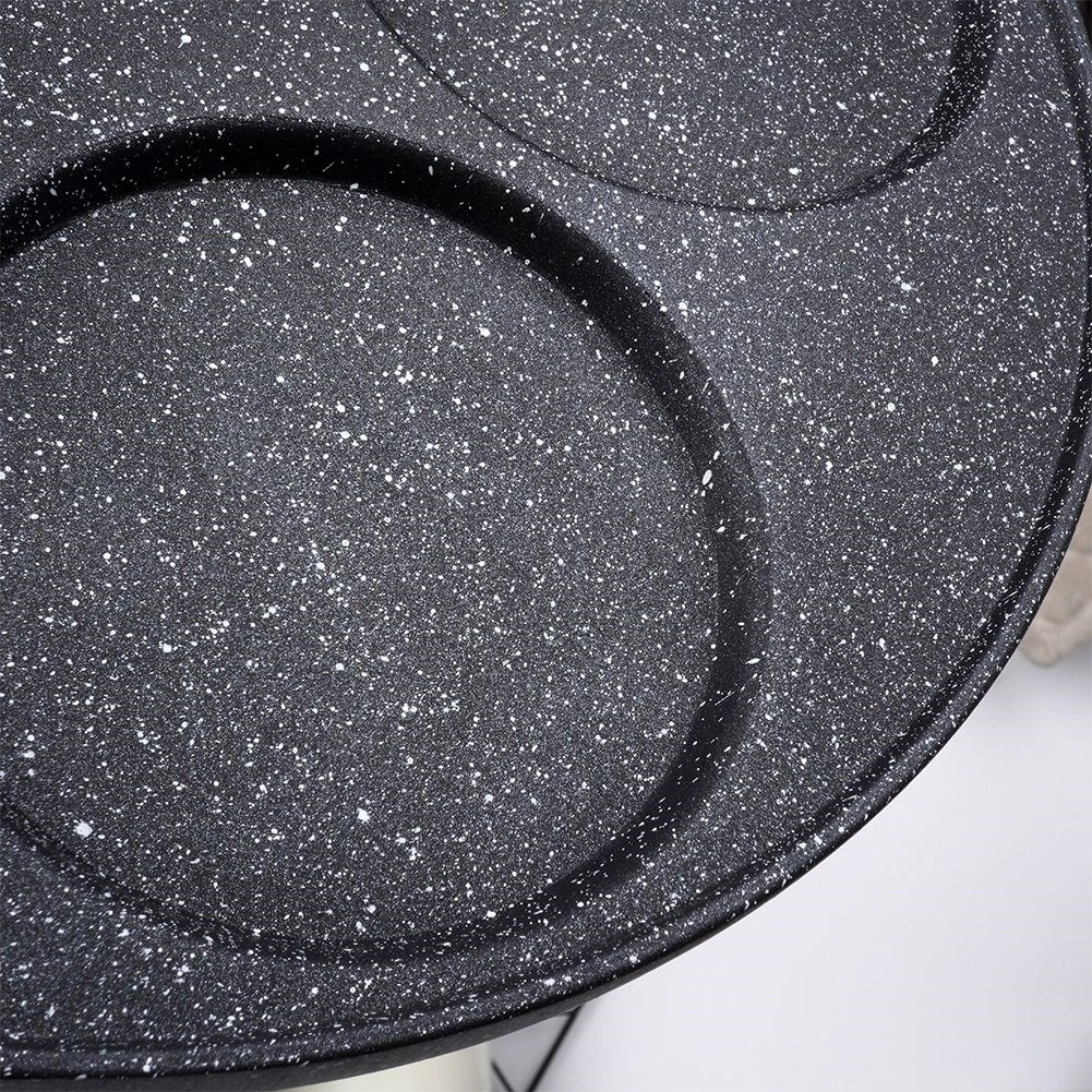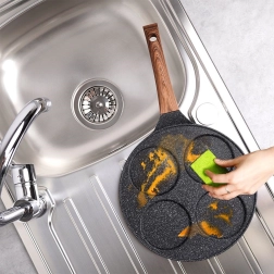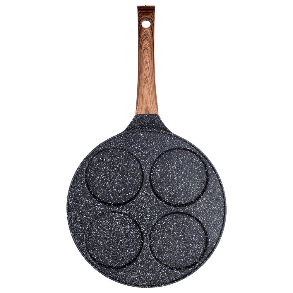 Praktiline graniitpann munade ja pliinide jaoks nelja vormiga läbimõõduga 9,5 cm, et saavutada täiuslikult ümmargune kuju. Tänu mittenakkuvale pinnale valmistad tervisliku ja ühtlaselt küpsenud hommikusöögi minimaalse õlikogusega. Ergonomiline käepide puiduimitatsiooniga istub mugavalt kätte ning pann sobib kõigile pliiditüüpidele, sh induktsioon.