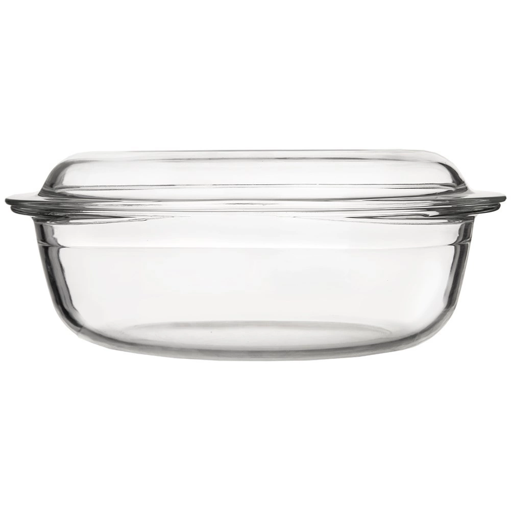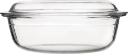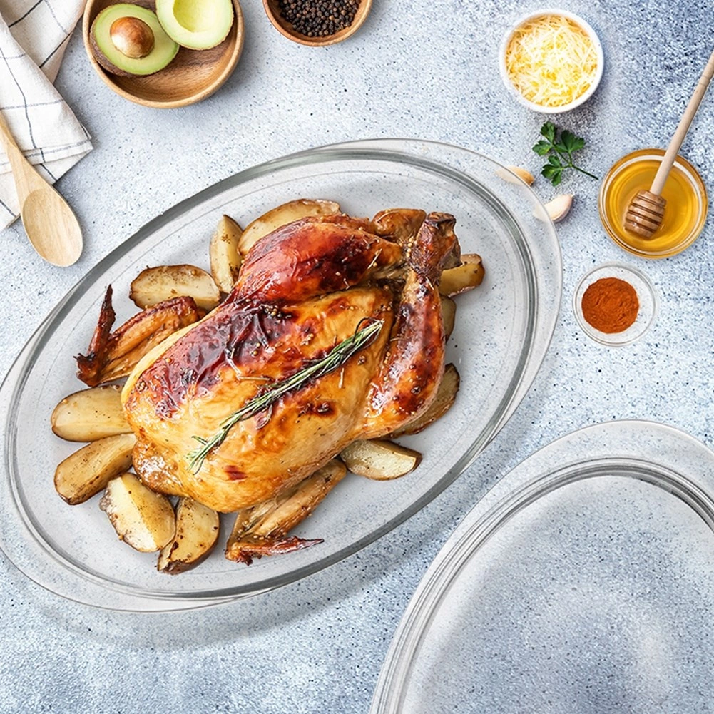 Komplektis on kaks klaasosist: sügavam kauss ja ülemine osa, mida saab kasutada kaanena või eraldi vormina. Integreeritud käepidemed teevad käsitsemise lihtsaks, kaas aitab säilitada niiskust ja roa mahlakust. Sile pind on kergesti puhastatav ja sobib nõudepesumasinasse.