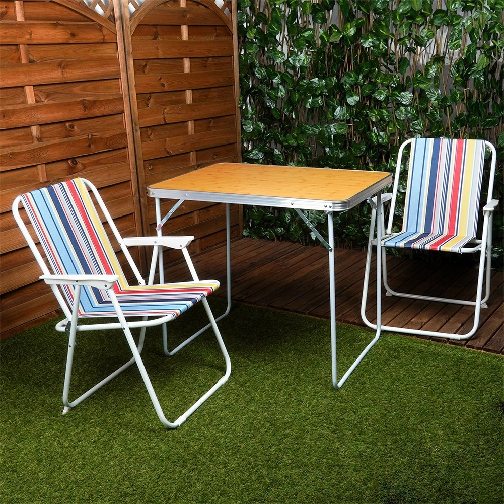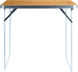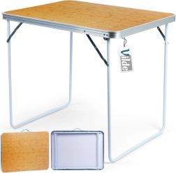 Praktiline kokkupandav kempingulaud lauaplaadiga 80 × 60 cm ja kõrgusega 70,5 cm. Pakub tugevat konstruktsiooni metallist ja puitdekooriga MDF-ist, kandevõime kuni 30 kg, on veekindel ning tänu integreeritud käepidemele on seda lihtne kanda.