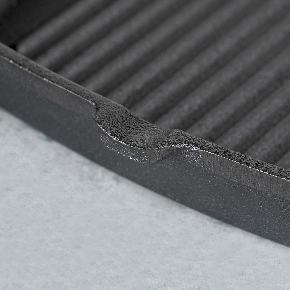 Kõrgemad ribid loovad selged grilltriibud ja juhivad rasva eemale. Integreeritud valamisnokkadega on lihtne mahlasid ja rasva välja valada.