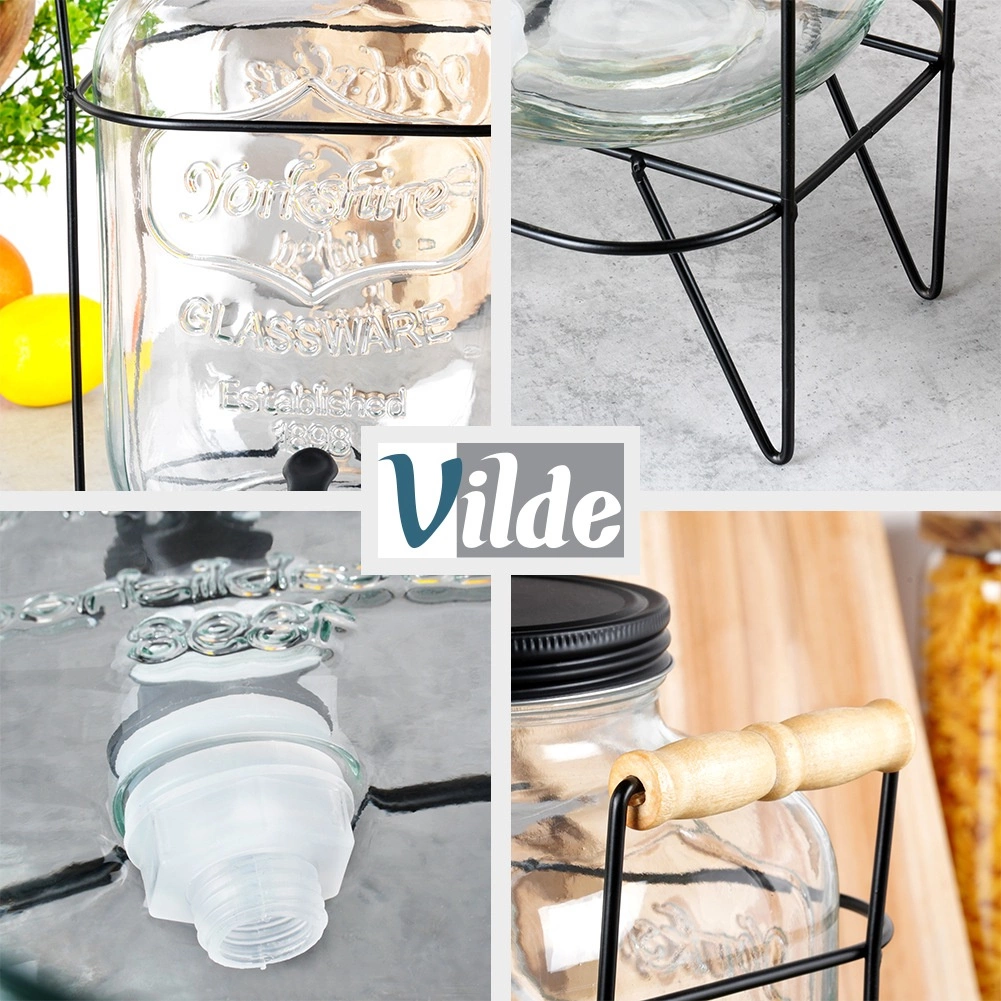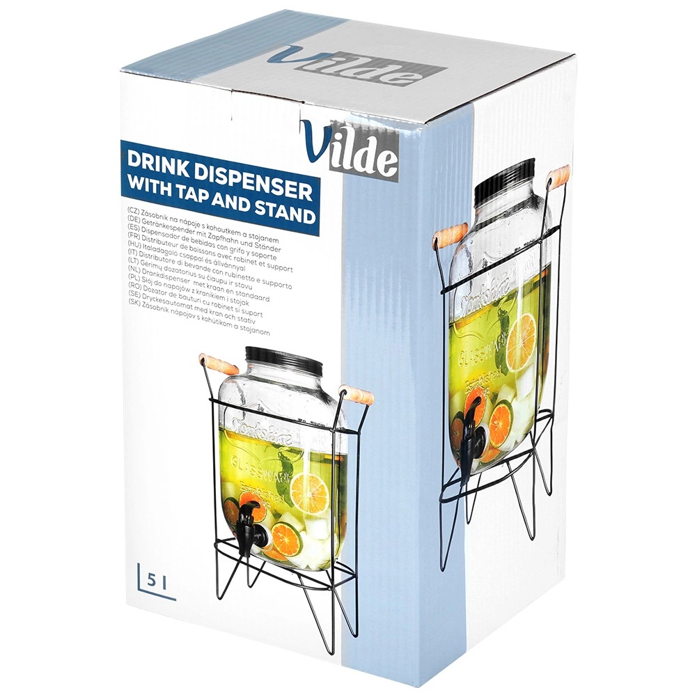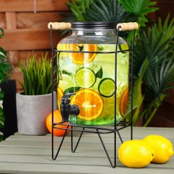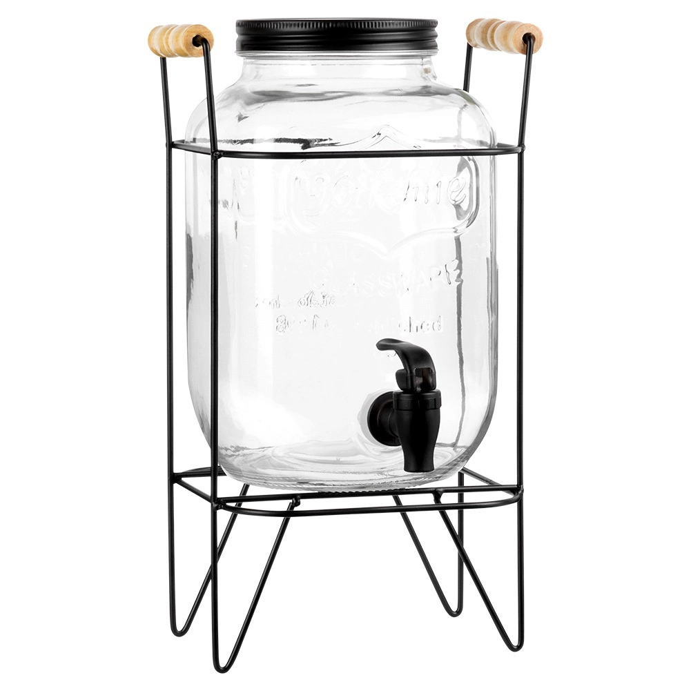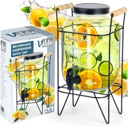 Stiilne 4,2 l mahuga klaasist joogidosaator stabiilse metallist alusraami ja praktilise kraaniga lihtsaks serveerimiseks. Ideaalne suvepidudeks, aias istumiseks ja ka koduseks kasutuseks. Valmistatud tugevast paksust klaasist reljeefse mustriga, on keeratav kaas putukate vastu ning mugav väljalaskekraan tihendiga. Alus tagab õige kõrguse valamiseks otse klaasi.