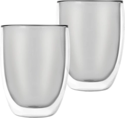 Kaasaegne kahe termojoogiklaasi komplekt DOUBLE kollektsioonist rõõmustab nii kohvi- kui teearmastajaid. Läbipaistev boorsilikaatklaas õrna suitsuse varjundiga toob kaunilt esile kihilise latte või cappuccino ning hoiab joogi kauem soojana või mõnusalt jahedana. Topeltsein isoleerib tõhusalt, mistõttu välispind soojeneb vähem ja klaasi on mugavam hoida.