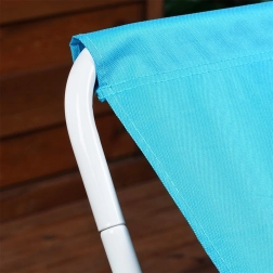 Lamamistool on mõeldud mugavaks puhkuseks õues. Vastupidav valge metallraam ja tugev sinine polüesterkangas tagavad stabiilsuse ja meeldiva istumise madalas lõõgastus-asendis. Tänu nutikale kokkupandavale mehhanismile saab selle hõlpsalt kokku panna, asetada kaasasolevasse kotti ja võtta randa, piknikule või puhkusele kaasa.