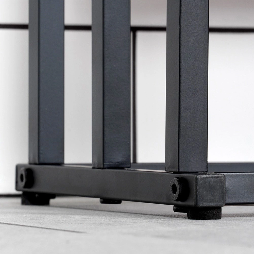 Vastupidav pulbervärvitud metallkonstruktsioon tagab kõrge stabiilsuse. Libisemisvastased ja kaitsvad jalad hoiavad ära põranda kriimustused ja aitavad tasandada ebatasasusi. Lihtsa ehituse tõttu on paigaldus kiire ja kerge – komplektis on vajalikud kruvid.