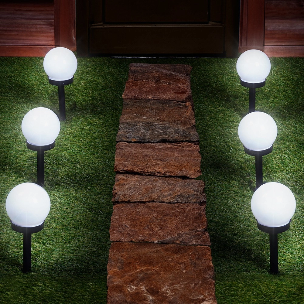 Kuue kerakujulise lambi komplekt valgustab ühtlaselt teeradasid ja aiapindu. IP44 kaitse välitingimustes kasutamiseks.