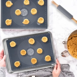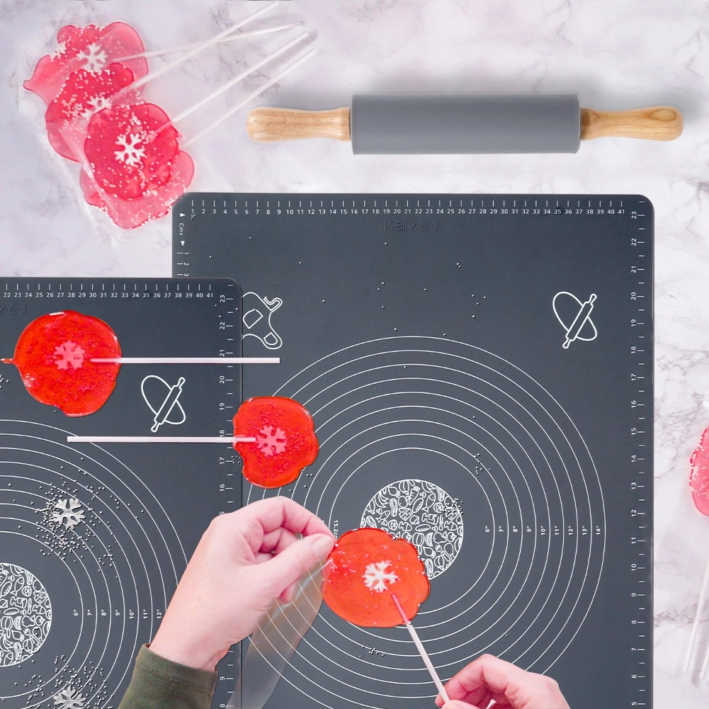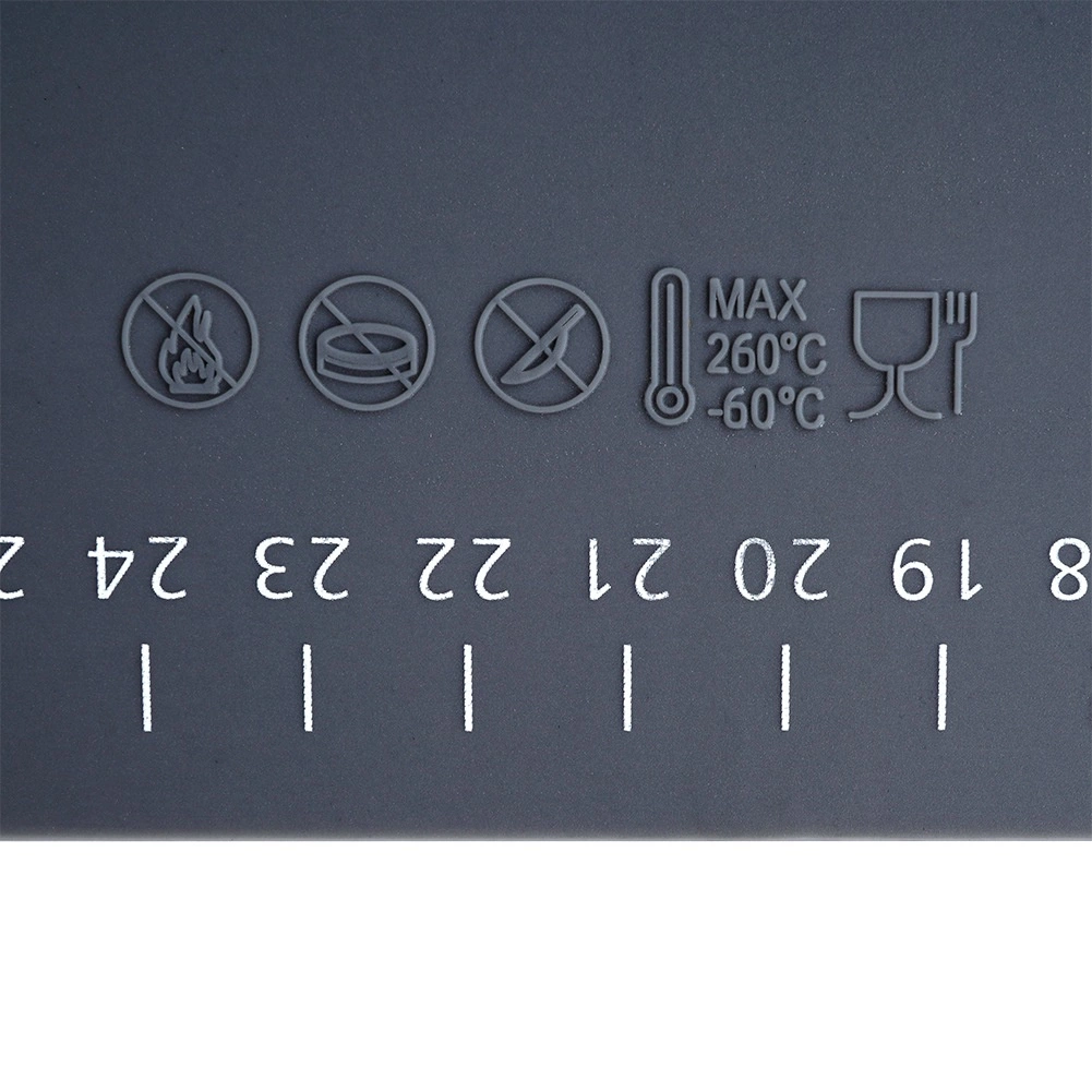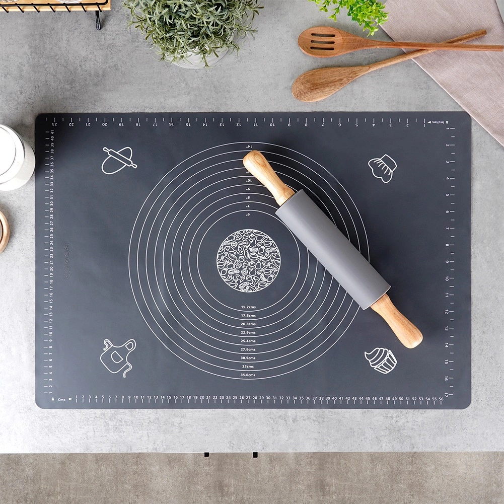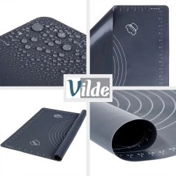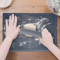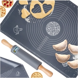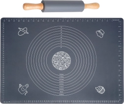 See universaalne kvaliteetsest silikoonist komplekt elegantses hallis toonis sobib suurepäraselt pirukate, pitsa, küpsiste, pasta ja pelmeenide taina ettevalmistamiseks. Alus on mittekleepuv ja libisemiskindel, püsib kindlalt tööpinnal ning tainas ei kleepu. Lihtne hooldada, ei ima lõhnu ja kuivab kiiresti.