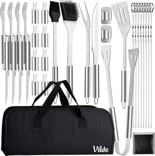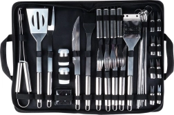 Komplekti sisu: 1× labidas (35 cm), 1× tangid (34,5 cm), 1× kahvel (35 cm), 1× nuga (32 cm), 1× pintsel silikoonharjastega (34 cm), 8× varras (35 cm), 1× soolatoos (3,5 × 5,5 cm), 1× pipritoos (3,5 × 5,5 cm), 1× grillihari kaabitsaga (34 cm) + 1× varuharjapea, 8× maisihoidja (7 cm), 4× söögikahvlit (21 cm), 4× sööginuga (24 cm), 1× kott.