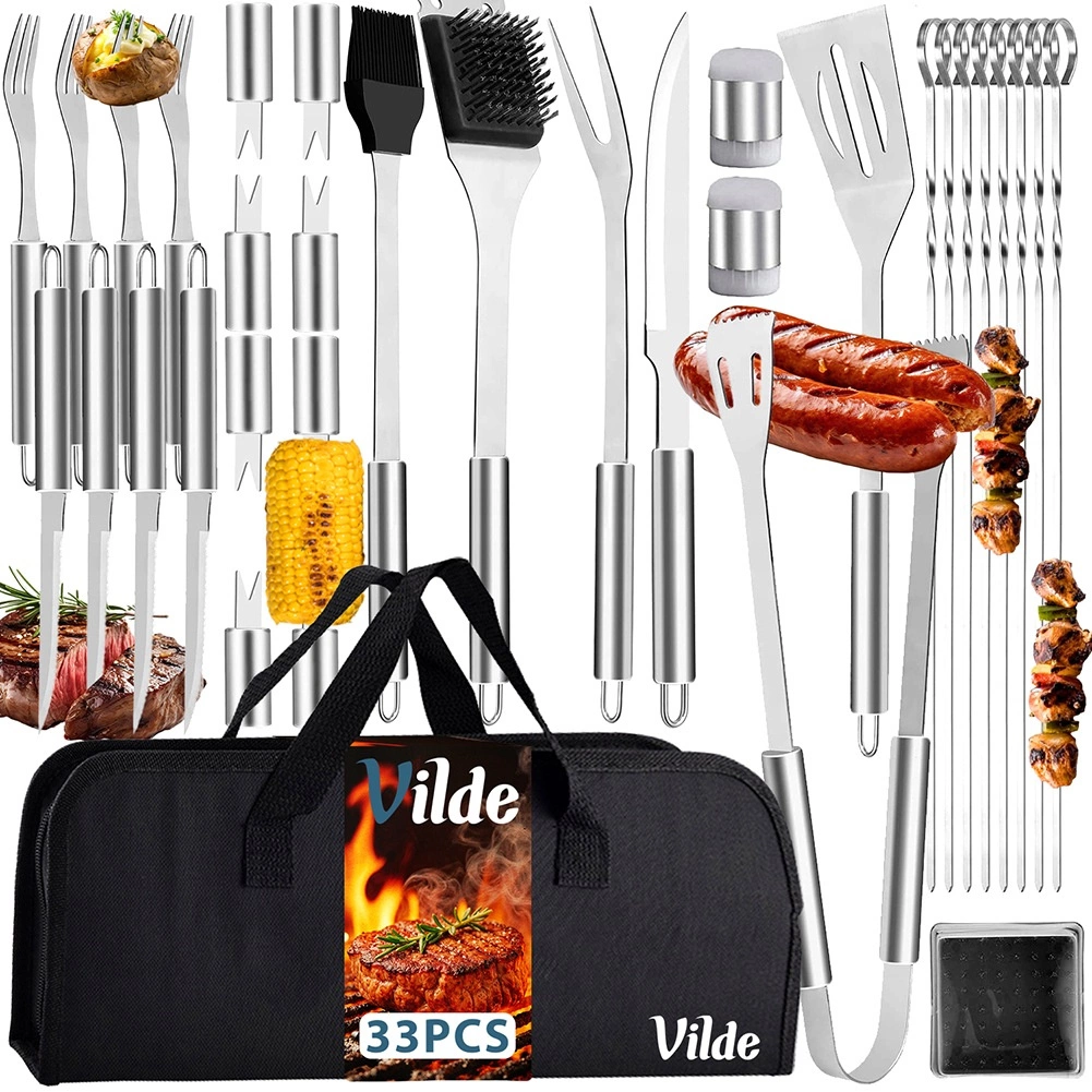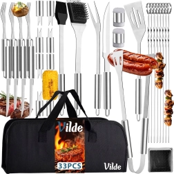 See universaalne grillitarvikute komplekt pakub 33 hoolikalt valitud roostevabast terasest osa igapäevaseks grillimiseks kodus ja teel. Pikad käepidemed riputusaasaga tagavad ohutu vahemaa kuumusest ja mugava käsitsemise. Praktiline tekstiilkott tugevate sangadega lihtsustab hoiustamist ja transporti, nii et kõik on alati käepärast ja korrapäraselt paigas.