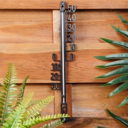 Universaalne seinatermomeeter temperatuuri mõõtmiseks nii toas kui õues. Pakub loetavat skaalat -30 kuni +50 °C, vastupidavat plastkorpust mustas värvitoonis ja lihtsat seinale riputamist seinale või aiale. Ideaalne rõdule, terrassile ja aeda ning ka siseruumi.
