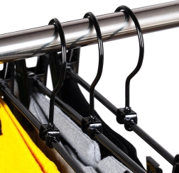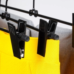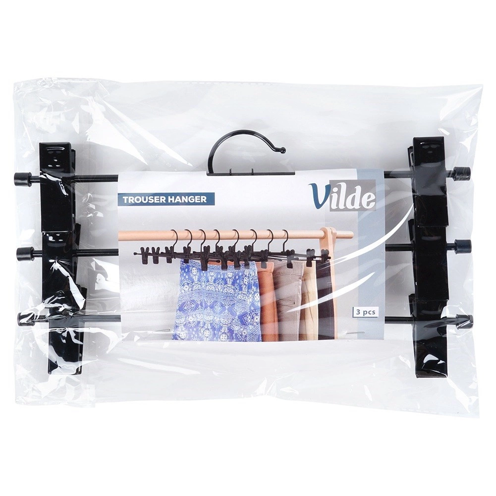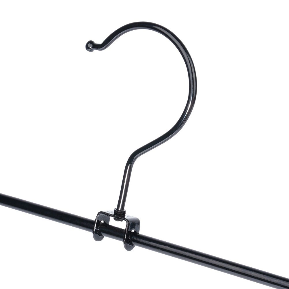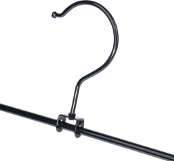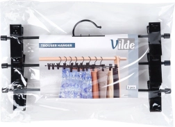 3 klambriga riidepuu komplekt on ideaalne garderoobi selgeks korrastamiseks. Reguleeritavad klambrid kaitsvate sisudega hoiavad kangast kindlalt ilma seda kahjustamata ja takistavad libisemist. Pulbervärvitud must metall on lihtsasti hooldatav ning näeb igas kapis elegantne välja.