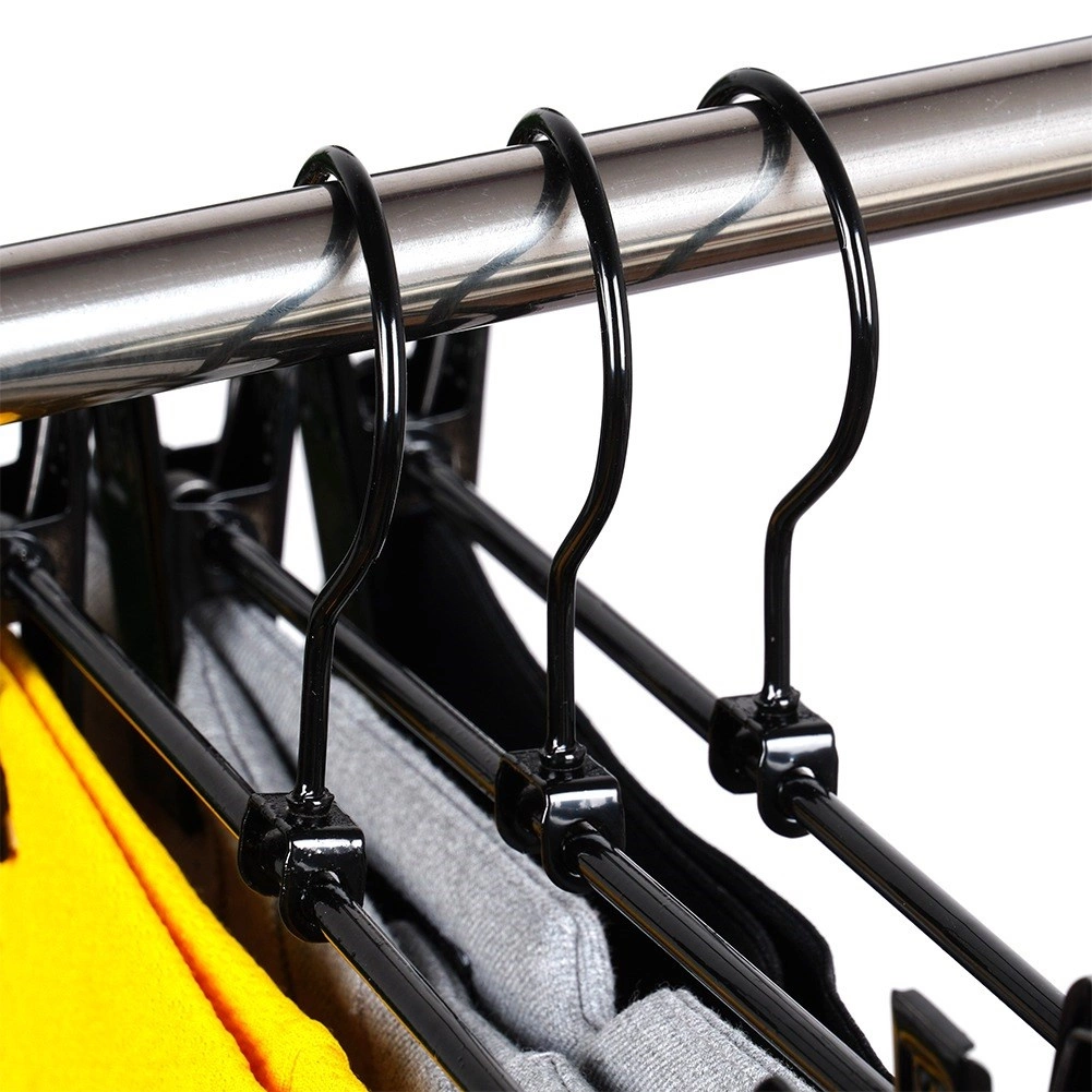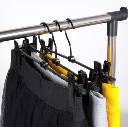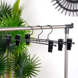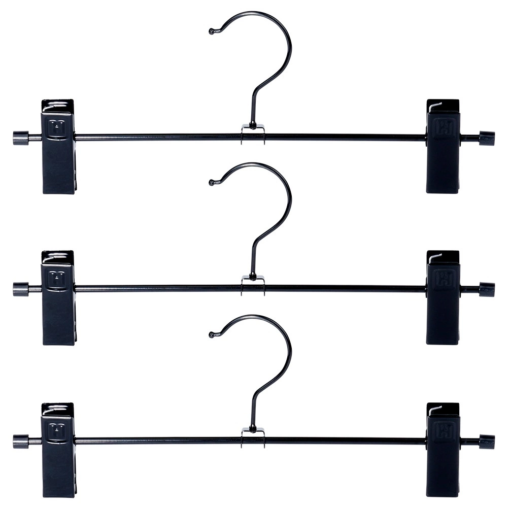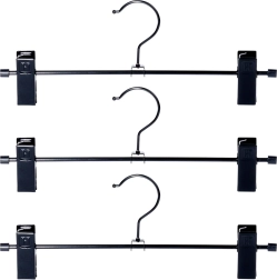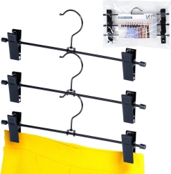Praktiline kolme metallist riidepuu komplekt reguleeritavate klambritega pükste ja seelikute jaoks. Tugev konstruktsioon ja nihutatavad kinnitused hoiavad rõivad kindlalt paigal, säästavad kapi ruumi ja aitavad vältida kortse. Kauakestev metall, tugevad vedruklambrid kaitsvate sisudega ning universaalne kasutus eri tüüpi rõivastele.