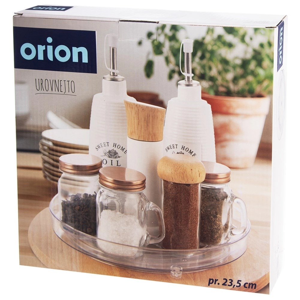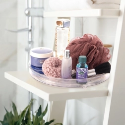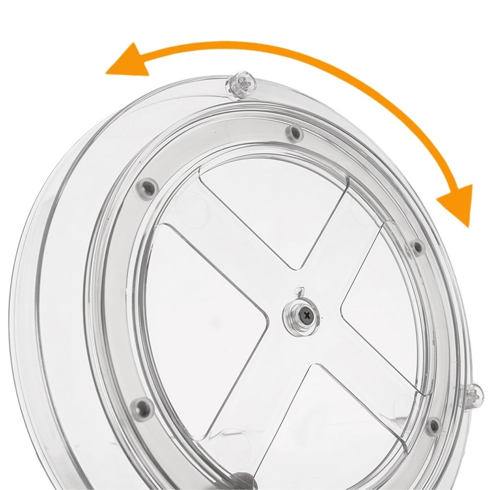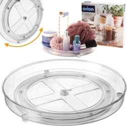 Praktiline 27 cm läbimõõduga pöörlev korraldaja vürtside, kosmeetika, purkide ja pudelite selgeks hoiustamiseks. Tänu alusele, millel on 360° pöörlemine, on kõik kohe käeulatuses, ruumisääst külmkapis, kappides ja riiulitel. Läbipaistev teostus tagab suurepärase nähtavuse ja lihtsa puhastamise.