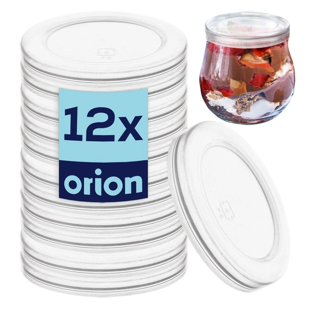 Praktiline 12 läbipaistva plastkaanega komplekt läbimõõduga 5,5 cm 130 ml jogurti- ja magustoidupurkidele. Kaaned tagavad tiheda sulgemise, hoiavad värskuse ja kaitsevad sisu nii hoiustamisel kui ka transpordil. Valmistatud vastupidavast materjalist korduvaks kasutamiseks. Tõestatud kvaliteet kaubamärgilt ORION.