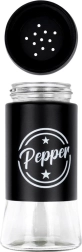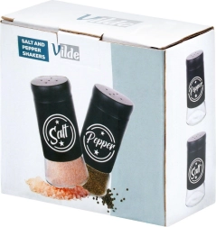 Komplektis on kaks 140 ml maitseainetoosi läbipaistva klaaspõhja ja mati musta metallist ülaosaga. Praktilised avadega korgid võimaldavad ühtlast puistamist ja aitavad hoida maitseainete värskust ja aroomi kauem. Tänu selgetele kirjetele Salt ja Pepper leiad alati kiiresti õige toosi.