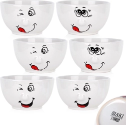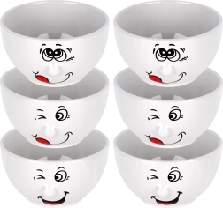 Praktiline ja stiilne kausikomplekt, mis köidab humoorika näodiseiniga ning pakub samas universaalset kasutust igapäevaseks serveerimiseks. Tänu 550 ml mahule sobivad need suurepäraselt suppidele, kreemidele, müsli, salatitele ja väiksematele suupistetele. Läikiv valge keraamika sobitub igasse kööki ja on lihtsasti kombineeritav muu lauanõudega.
