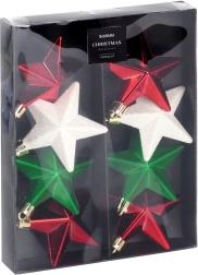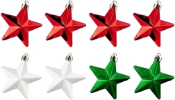 Stiilne komplekt, milles on 8 purunematut jõulukaunistust tähe kujul värvides punane, roheline ja valge, pinnaviimistlustega läikiv, matt ja sädelev. Tähekeste läbimõõt on 6,5 cm, need lisavad sinu kaunistustele klassikalist läiget ja turvalist elegantsi – ideaalne koju, kus on lapsed ja lemmikloomad.
