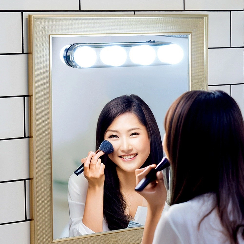 Neli ümarat LED-pirni tagavad ereda, ühtlase valgustuse ilma häirivate varjudeta – ideaalne jumestuseks ja detailseks hoolduseks.