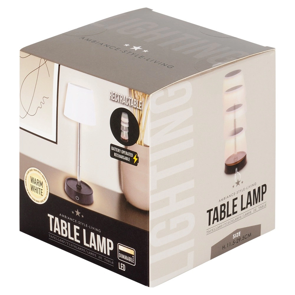 See dekoratiivne LED‑laualamp paistab silma puhta disaini ja universaalse kasutusega. Tänu reguleeritavale kõrgusele 11–29,5 cm ja kompaktsetele mõõtudele kohandub see hõlpsalt nii töö- kui ka puhkealadesse. Soe valge valgus loob hubase meeleolu magamistoas, elutoas ja söögitoas.