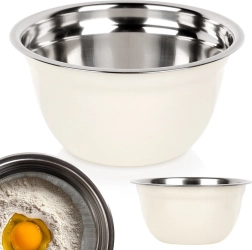 See praktiline kauss kvaliteetsest roostevabast terasest ühendab ajatuse disaini ja kõrge vastupidavuse. Valge välispind mõjub elegantselt, samas kui poleeritud sisemus hõlbustab puhastamist ja on hügieeniline. Sügav, ümardatud kuju ja laiendatud serv tagavad mugava segamise ning valamise.