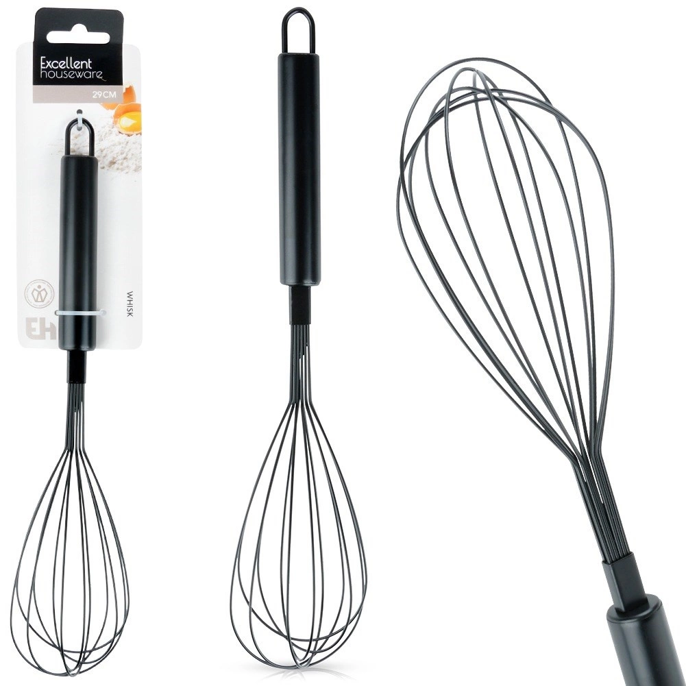 See sobib suurepäraselt taignate segamiseks, marinaadide valmistamiseks ja kastmete õrnaks paksendamiseks. Ergonoomiline käepide püsib mugavalt käes ka pikema töö ajal ning riputusaas muudab hoiustamise lihtsaks. Must viimistlus mõjub modernselt ja on hõlpsasti hooldatav – vispel on nõudepesumasinas pestav.