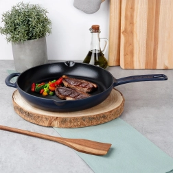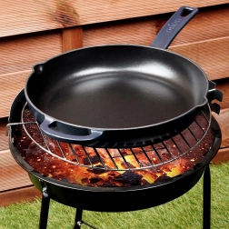 See universaalne malmpann sobib suurepäraselt praadimiseks, vokkimiseks, hautamiseks ja küpsetamiseks. Vastupidav konstruktsioon ja emailitud pind teevad toiduvalmistamise ja järgneva puhastuse lihtsaks. Pann hoiab kõrget temperatuuri kaua, mis on ideaalne steigi, köögiviljade, kartulite ja pitsa jaoks. Sobib kööki, grillile ja lahtisele tulele.