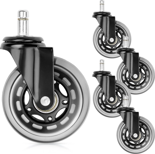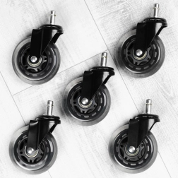 Viie varuratta komplekt kontoritoolile pakub mugavat ja ladusat liikumist kõvadel põrandatel. Vastupidavast kummist rattad summutavad müra, hoiavad pindu ning kvaliteetsed laagrid tagavad sujuva pöörlemise ka pikema kasutuse korral.