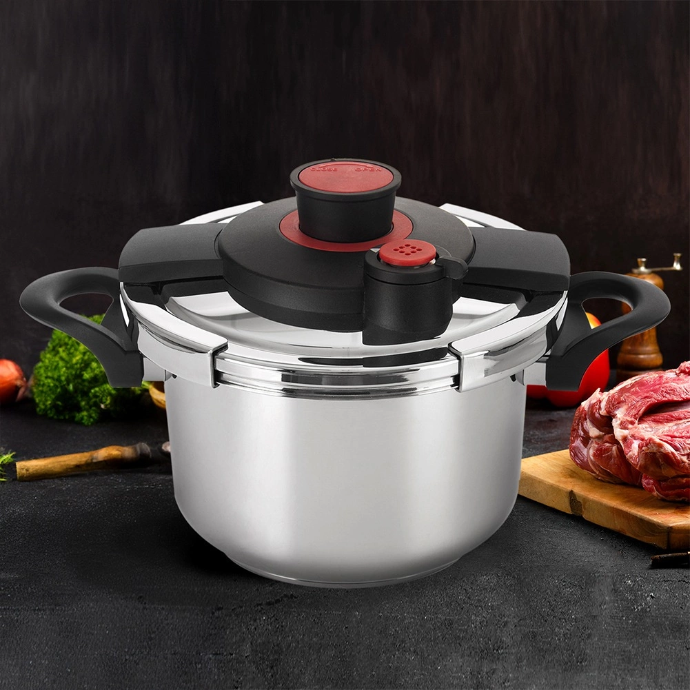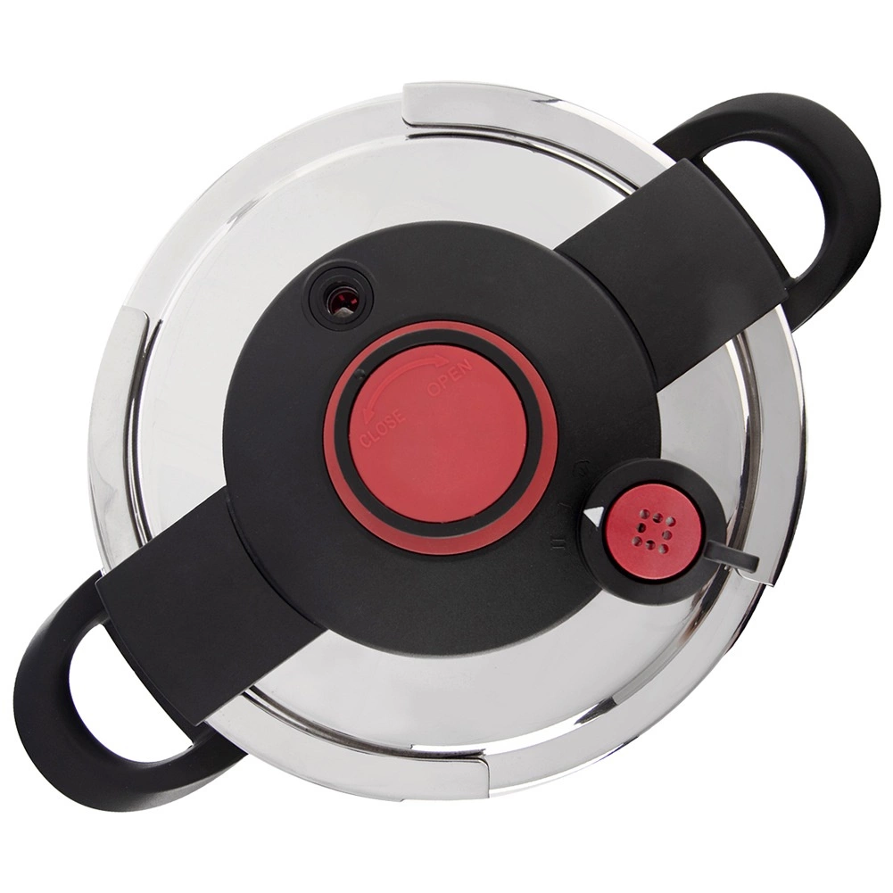 Praktiline 5-liitrine roostevabast terasest kiirkeedupott koos kaane automaatse lukustusega, kahekordse sandwich-põhjaga ja 2 keetmisprogrammiga kiireks, ohutuks ja energiasäästlikuks toiduvalmistamiseks. Sobib kõigile pliiditüüpidele, sh induktsioon, võimalusega auru vabastada ning varu-ohutusklapiga. Ideaalne suppideks, guljaššiks, lihale, köögiviljadele ja ühepajatoitudele.