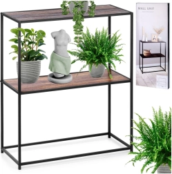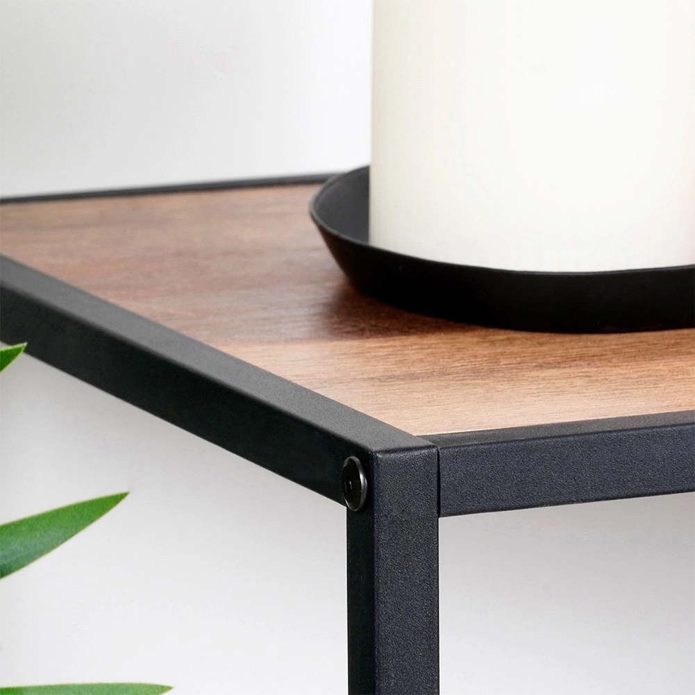 See kahekorruseline riiul mõõtudega 70 × 30,5 × 85 cm on ideaalne nii korrapäraseks hoiustamiseks kui ka stiilseks dekoratsioonide, raamatute, taimede ning vannitoa- ja köögitarvikute eksponeerimiseks. Robustne metallraam mustas toonis koos puiduimitatsiooniga MDF-riiulitega loob modernse industriaalilme, mis sobib enamiku interjööridega.