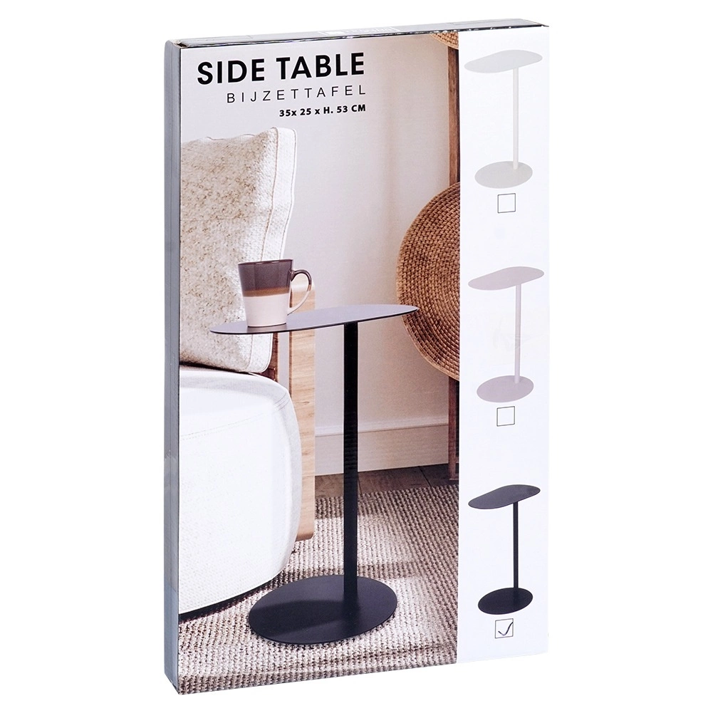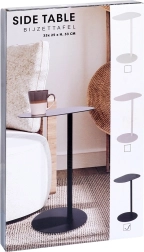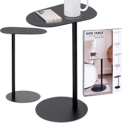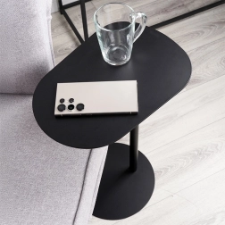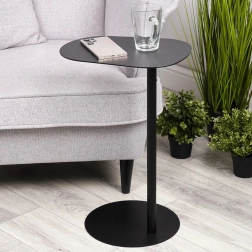 Minimalistlik külglaud on ideaalne koht kohvitassi, telefoni, pultide või sülearvuti jaoks. Täismetallist konstruktsioon mattmusta viimistlusega mõjub elegantselt ja sobitub hõlpsasti nii modernse kui ka klassikalise stiiliga. Tänu saledale jalale ja 27 cm läbimõõduga ümmargusele alusele püsib laud stabiilsena, võtmata palju ruumi.