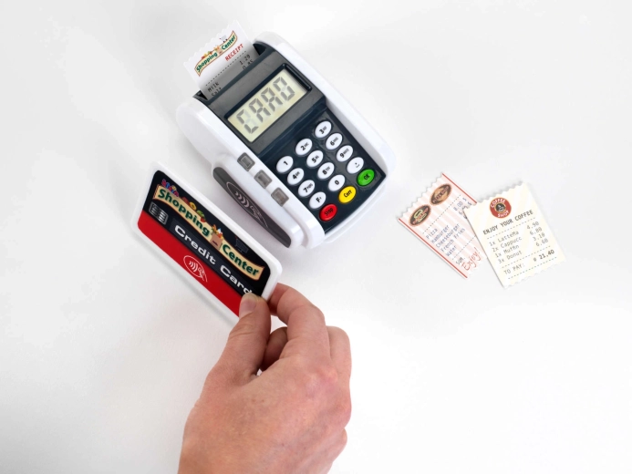 See kompaktne terminal jäljendab tõetruult päris seadet: lapsed saavad vajutada numbriklaviatuuri, lähendada maksekaarti ja „printida” tšekke, et mängukassa oleks võimalikult realistlik. Valgus- ja heliefektid annavad igale tehingule päriselu tundemärgi ning toetavad sotsiaalsete oskuste arengut.