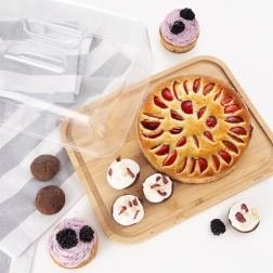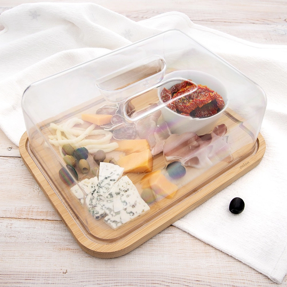 See ristkülikukujuline bambusalus läbipaistva kattega on loodud igapäevaseks serveerimiseks ja toidu hoiustamiseks. Mõõdud koos kattega 28 × 22 × 11 cm pakuvad piisavalt ruumi juustudele, võileibadele, magustoitudele ja puuviljadele. Läbipaistev kaas integreeritud käepidemega võimaldab kiiret ligipääsu ning hoiab pakutavad hõrgutised värskena.