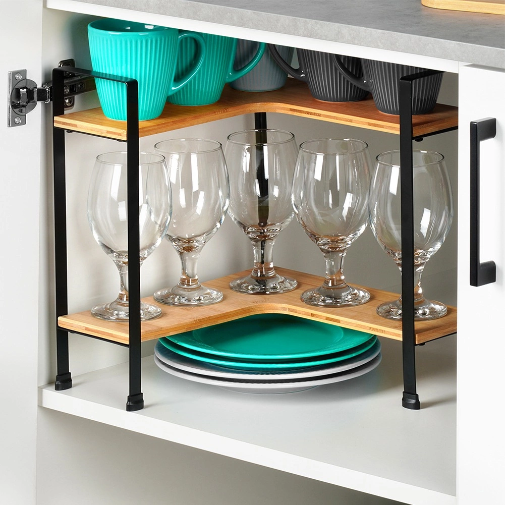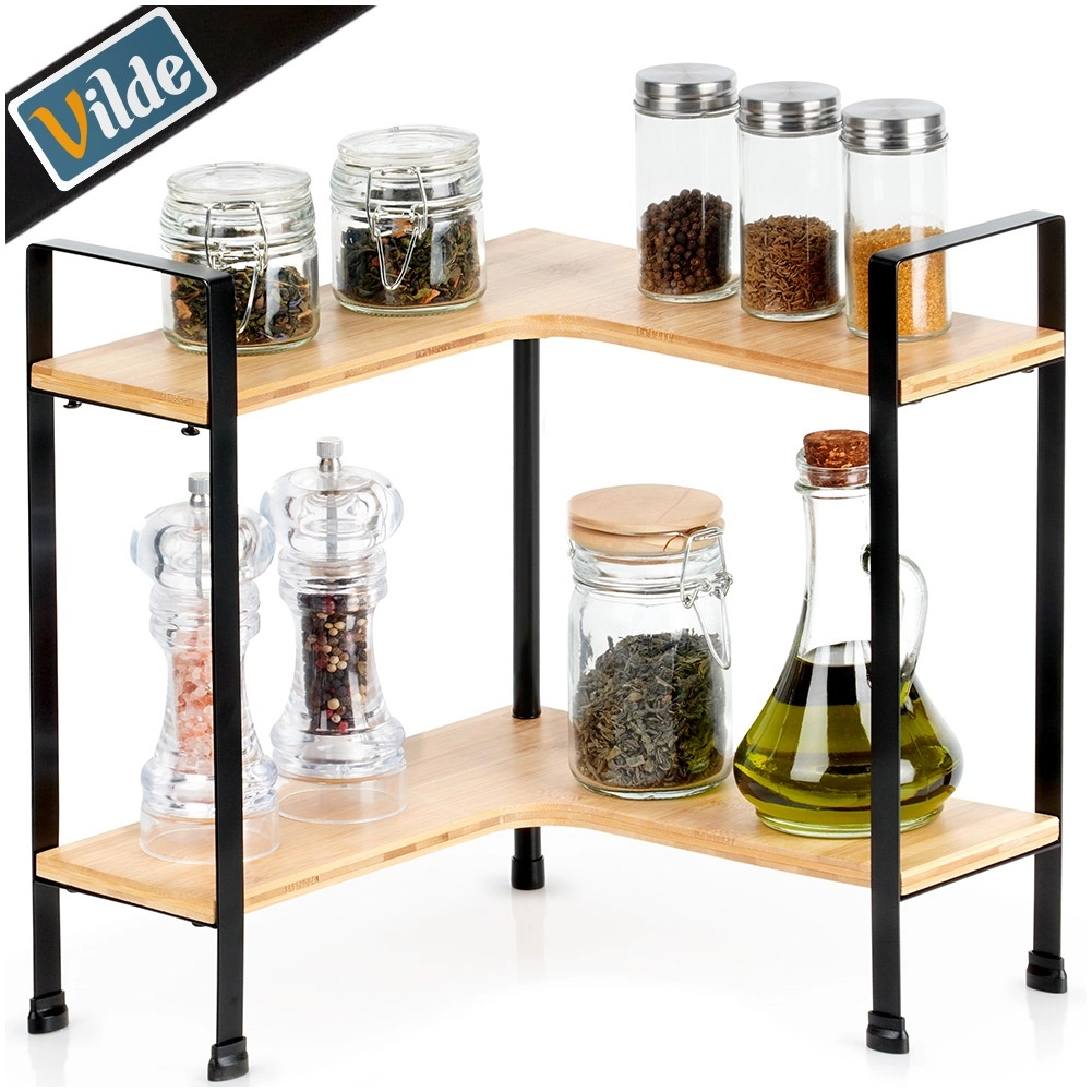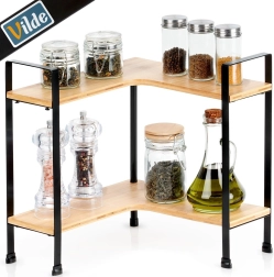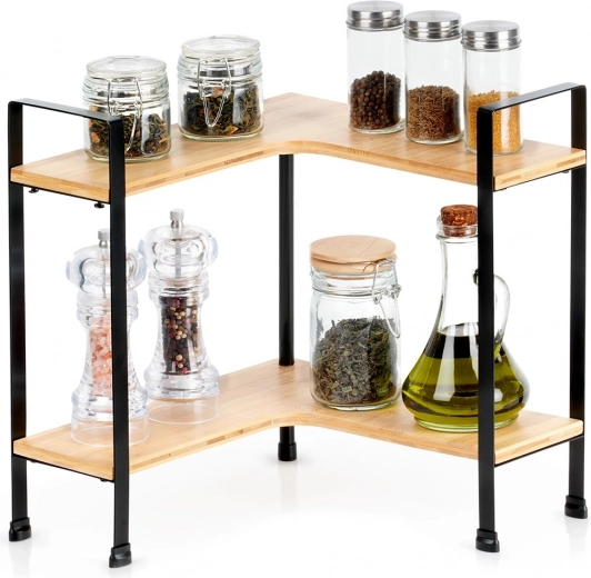 Hoia köök korras ja stiilne selle bambuspuidust nurgariiuliga, millel on tugev metallraam. See pakub 2 tasandit hoiuruumi, L-kuju nurkadesse ja stabiilsed metalljalad pinnakaitsega. Ideaalne vürtsidele, kruusidele, purkidele ja kaussidele, säästab tööpinnal ruumi ja sobib modernsesse interjööri.