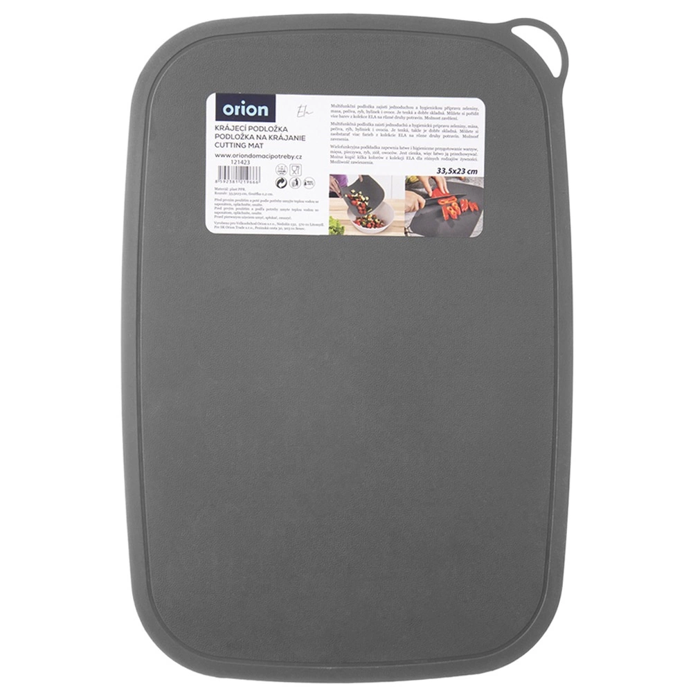 Praktiline elastne lõikematt kvaliteetsest plastist hallis värvitoonis, mõõtudega 33,5 × 23 × 0,1 cm. Tänu painduvale teostusele saad hakitud koostisosad hõlpsalt otse kaussi või potti kallata; matt on vaikne, kerge ja säästab noaterasid. Sobib nõudepesumasinasse ja on kuumakindel kuni +95 °C. ORION kvaliteet igasse kööki.
