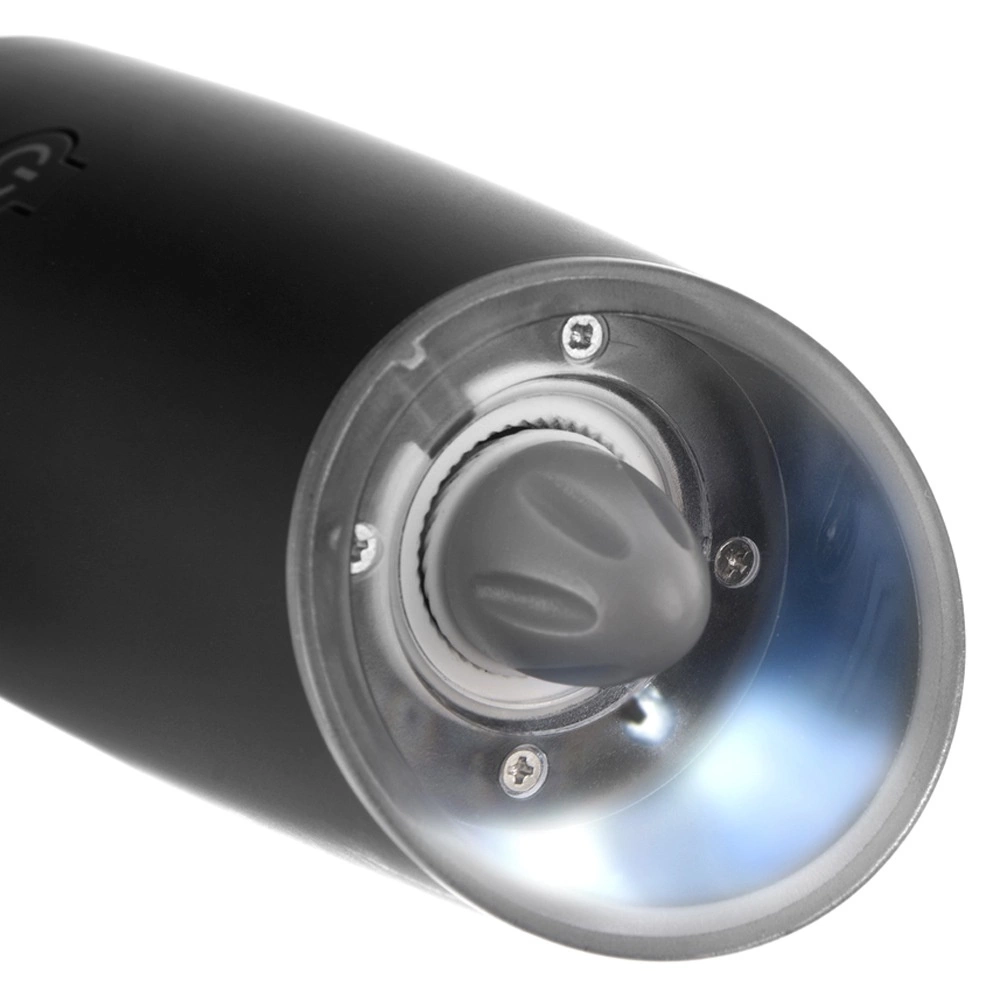 Integreeritud LED‑valgusti ja automaatne käivitumine pööramisel teevad täpse maitsestamise lihtsaks otse taldrikul või pannil ühe käega.