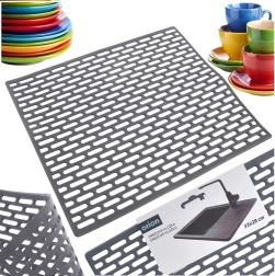 Praktiline kummist kraanikausi matt mõõtudega 33 × 28 × 0,1 cm kaitseb usaldusväärselt põhja kriimustuste ja löökide eest. Perforatsiooni tänu tagab sujuva vee äravoolu, on libisemiskindel ja niiskuskindel. Universaalne hall värv sobib enamiku köökidega ning matt sobib erinevat tüüpi kraanikaussidele.
