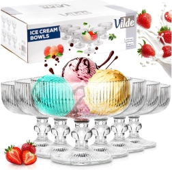 Elegantsed 270 ml klaasist jäätisepokaalid praktilises 6-osalises komplektis. Valmistatud tugevast, läbipaistvast, triibulisest klaasist koos stabiilse jalaga turvaliseks serveerimiseks. Ideaalne jäätise, sorbeti, jogurti, tiramisu ja puuviljasalatite jaoks, sobib ka näputoidule. Nõudepesumasinas pestav lihtsaks hoolduseks.