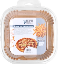 Vilde ühekordsed paberist sisud säästavad puhastusaega ja hoiavad fritüüri korvi kauem puhtana. Ruutkujuline vorm krepservadega sobib hästi kandilistesse korvidesse. Põhja mõõt on u 16 × 16 cm ja ülemine mõõt 19 × 19 × 4,5 cm, pakkudes piisavalt ruumi friikartulitele, kanatiibadele, köögiviljadele ja saiale.