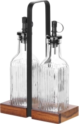 Too koju korrastatud ja hügieeniline maitsestajate hoiustamine. Kaks läbipaistvat, rihveldatud klaaspudelit mahuga 190 ml on paigutatud stabiilsele akatsiast alusele musta metallist sangaga, et neid oleks lihtne kanda. Igal pudelil on praktiline dosaator, mis aeglustab voolu ja aitab valada täpset kogust ilma tilkade ja mahaloksumiseta.