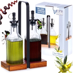 Komplekt sobib suurepäraselt oliiviõlile, äädikale, maitseõlidele ja vinegrettidele. Tänu puhtale disainile ja dekoratiivsele rihveldusele sobib see nii köögitasapinnale kui ka otse lauale bistroos, pizzerias või restoranis. Kvaliteetne teostus ja materjalid tagavad pika kasutusea ja lihtsa hoolduse.