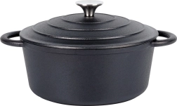 Tugev malmist pott kaanega, maht 2,6 l, sobib ideaalselt aeglaseks hautamiseks, küpsetamiseks ja kõigil pliiditüüpidel, sh induktsioonil, keetmiseks. Malm tagab ühtlase soojusjaotuse ja pika soojuse hoidmise, nii et road püsivad kauem soojad ja mahlased. Praktilised külgmised käepidemed ja kaan roostevabast terasest nupuga lihtsustavad käsitsemist kodus, grillil ja ka telkides.
