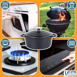 Sobib gaasile, elektrile, keraamilisele klaasile, halogeenile ja induktsioonile. Julgelt kasutatav ka ahjus, grillil või lahtisel tulel.