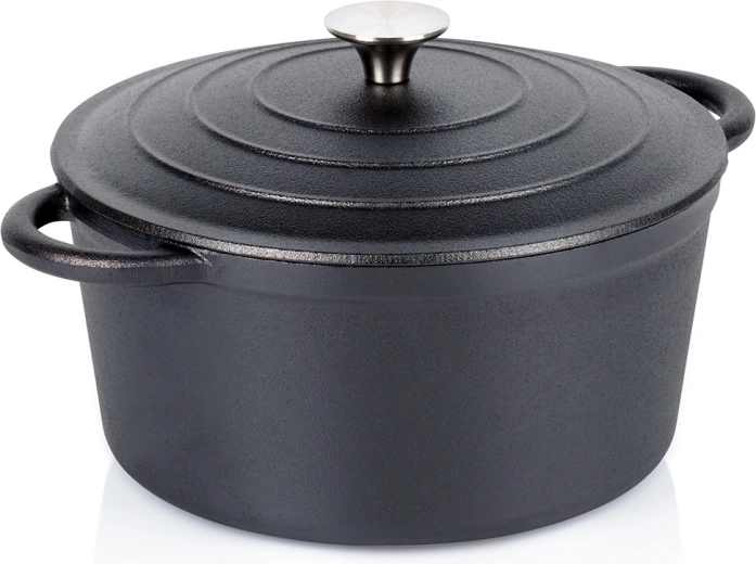 Pott ühildub gaasi-, elektri-, klaaskeraamilise, halogeeni- ja induktsioonpliidiga ning sobib kasutamiseks ka ahjus või grillil. Kaks laia sanga tagavad ohutu käsitsemise, kaanenupu roostevaba teras talub kõrgeid temperatuure. Ilma mittenakkuvate kateteta – puhas malm loomulikuks toiduvalmistamiseks ja pikaealisuseks.