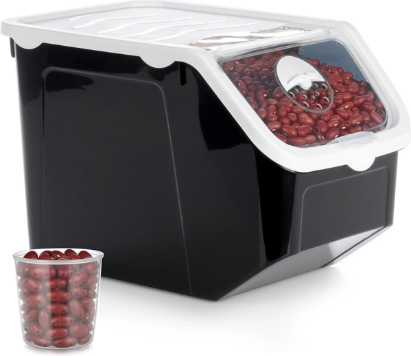 Konteiner sobib ideaalselt kartulitele, sibulatele, küüslaugule, aga samuti pastale, kaunviljadele, lemmikloomatoidule ja pulbrisegudele. Kvaliteetne BPA-vaba plast on toiduga kokkupuuteks ohutu, sobib sügavkülmikusse ja nõudepesumasinasse. Praktiline mõõdutops skaalaga 40–160 ml teeb täpse doseerimise lihtsaks.