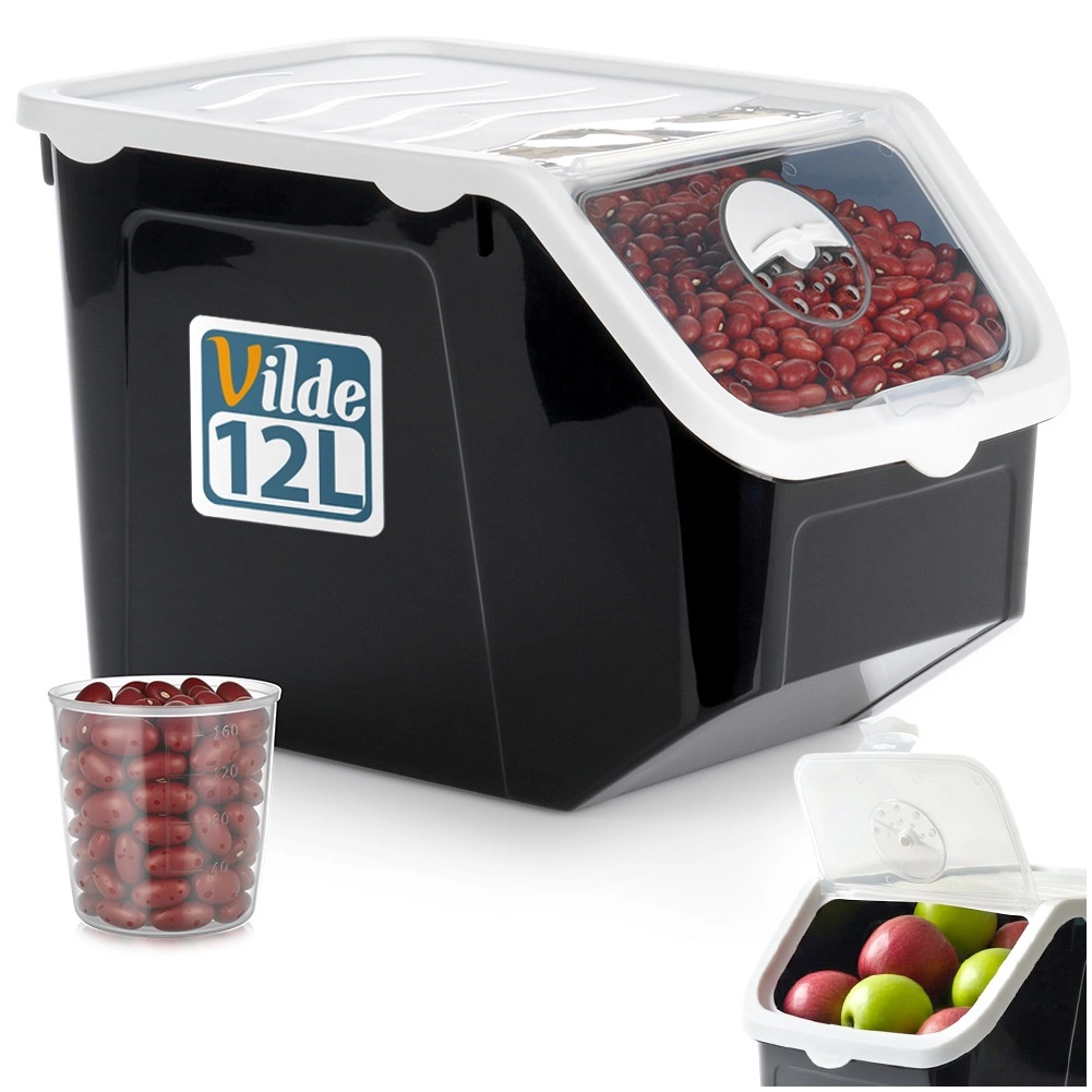 Praktiline 12 l köögikonteiner puu- ja köögiviljade ning kuivainete jaoks. Kaasel on õhuvoolu reguleerimine, läbipaistev väljatõstetav klapp lihtsaks doseerimiseks ning tihedalt sulguv kaas pikemaks värskuseks. Komplektis on mõõdutops 40–160 ml. Valmistatud BPA-vabast ohutust plastist, sobib kokkupuuteks toiduga, sügavkülmikusse ja nõudepesumasinasse, temperatuuritaluvus -20 °C kuni 100 °C.