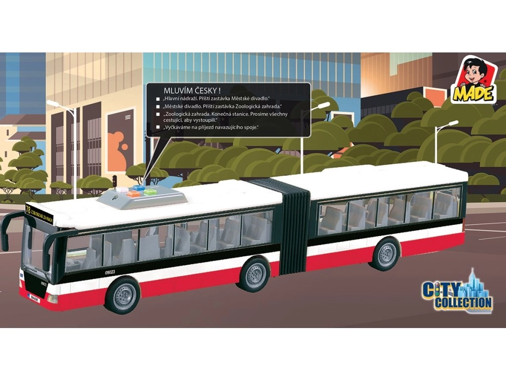 See detailselt viimistletud liigendbuss pakub lastele realistlikku linnatranspordi kogemust. Tänu hõõrdejõu veole hakkab see kergesti liikuma ning valguselemendid koos tšehhikeelsete peatuseteadustustega võimendavad mängu ja arendavad kujutlusvõimet.