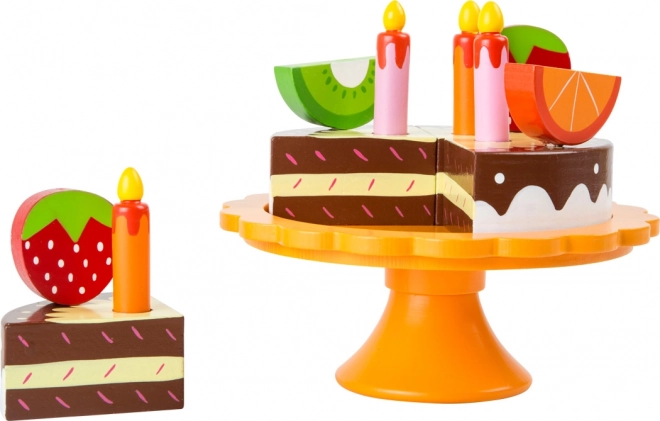 Small Footi puidust sünnipäevane puuviljatort sobib suurepäraselt iga lapse peole. Interaktiivne mänguasi võimaldab lastel mängida üksikute puuviljatükkidega, mis on kinnitatud varrastega ja mida saab lihtsasti ümber paigutada. Küünlad ja kaunistused annavad tordile autentsed ilme ning lapsed saavad mängida päris sünnipäevapidu.
