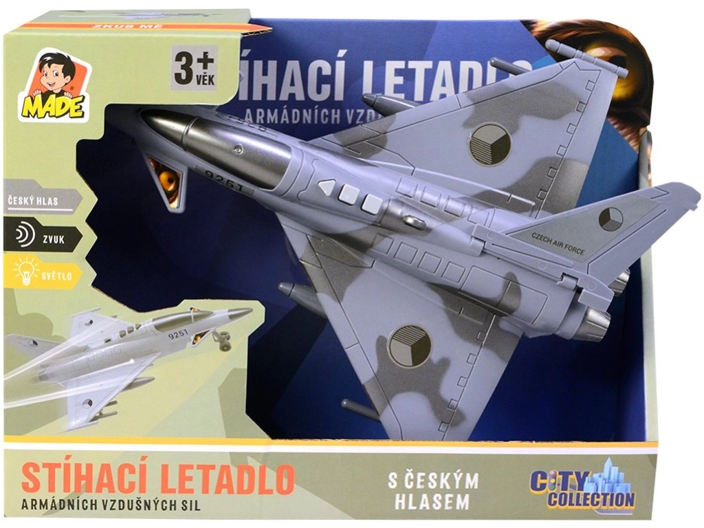 Nauti põnevaid lennumissioone detailse hävituslennukiga, mida kaunistavad Tšehhi Vabariigi riigitunnused. Mudel pakub autentseid tšehhikeelseid dialooge lennujuhtimistorni ja piloodi vahel, valgusefekte ning hävitaja lennu heli, mis võimendab mängu atmosfääri.