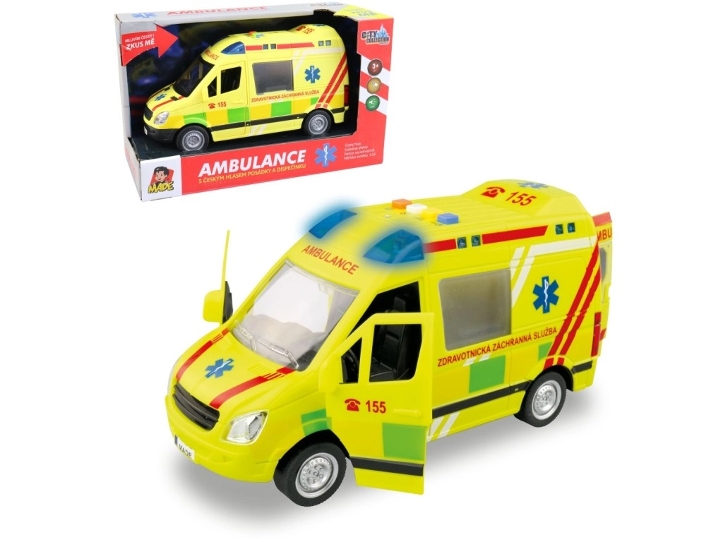 Realistlik 1:16 mõõtkavas kiirabimänguasi pakub lastele ehtsat päästeaktsiooni kogemust. Sõidab hoorattal, sellel on töötav vilkur siniste tuledega, tšehhikeelsed meeskonna ja dispetšeri teated, avatavad uksed ja komplektis patareid.