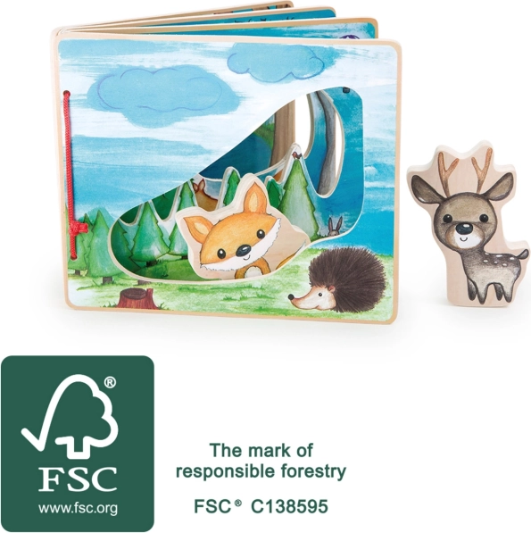 Astu sügavasse metsa interaktiivse puidust raamatuga, mis ergutab laste kujutlusvõimet. Tänu rebase ja põdra figuuridele, mis aitavad avastada floora ja fauna rikkusi, saab igast mängust ainulaadne elamus.