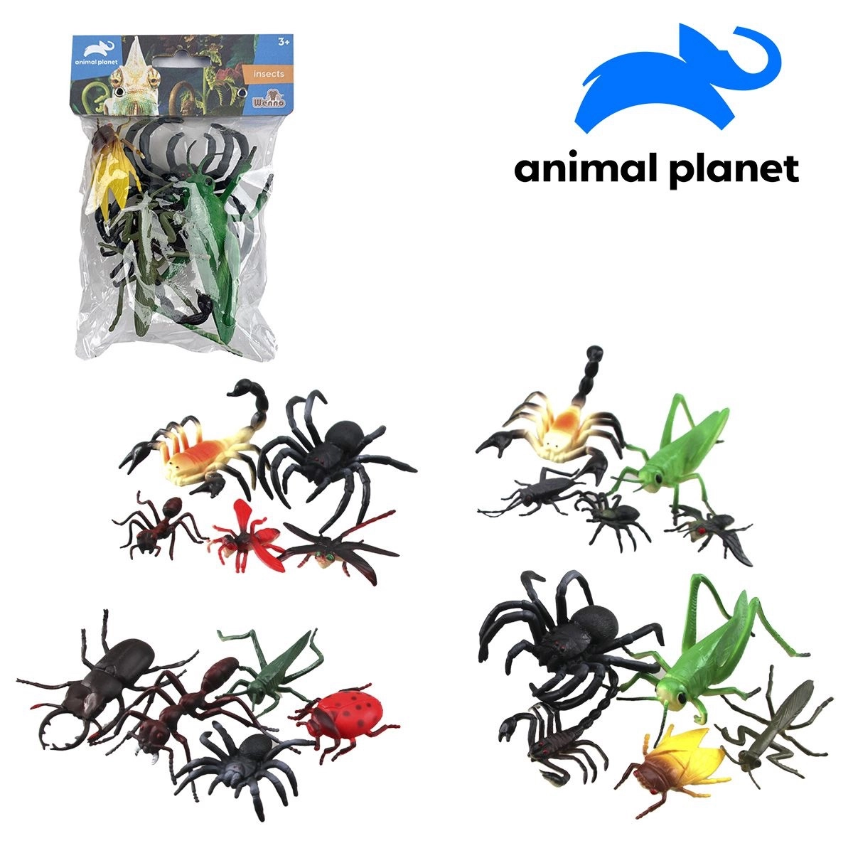Avasta looduse maailma 5-osalise putukate figuurikomplektiga. Iga figuur on umbes 11 cm, valmistatud vastupidavast PVC-st ja sobib lastele alates 3. eluaastast. Hariv mänguasi koos ANIMAL PLANETi litsentsiga, valmistatud taaskasutatud materjalidest ning värvitud sojapõhiste tintidega keskkonnasõbralikuks elamuseks. Komplektis on AR-rakendus, mille saab alla laadida QR-koodi kaudu. Erinevad liigid, müüakse assortiina. Hind 1 pakile.